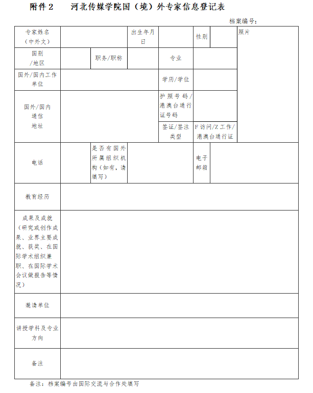 1. 河北传媒学院国(境)外专家信息登记表(见附件1)。