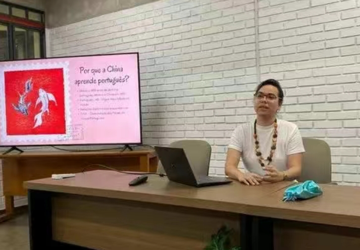 Gabby自2018年起任教于河北传媒学院,其专业素养与跨文化沟通能力深受师生好评。此次回巴西宣讲,她以“我在中国的教学生活”为主线,结合影像资料与亲身经历,向巴西师生展示了河北传媒学院现代化的教学设施、多元化的国际交流项目以及葡语专业学生赴巴学习的丰硕成果。她特别提到,河北传媒学院与巴西多所高校建立了长期合作机制,例如自2011年与巴西大学缔结友好学校以来,选派了近百名葡语专业学生赴巴学习,毕业生凭借扎实的语言能力与跨文化适应力,广泛就职于中巴经贸、人文交流等领域。此外,学校去年还与戈亚斯州立大学联合举办语言文化讲座,持续深化学术合作框架下的互动。