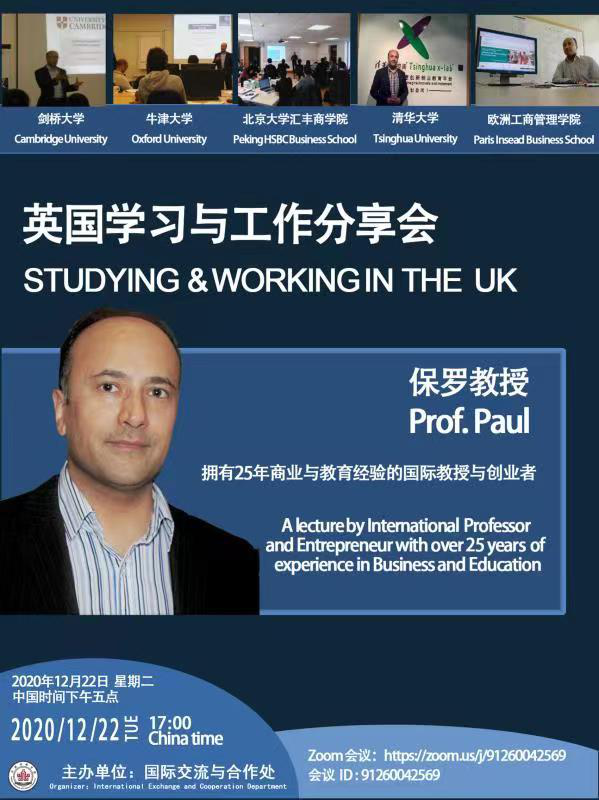 保罗教授分享了英国的学习模式,讲述了其25年的商业与教育经验。此次线上分享会开拓了学生学习新模式,拓宽了国际视野。