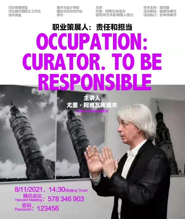 2021年11月8日,俄罗斯院士尤里·阿维瓦库莫夫(YURI AVVAKUMOV)为我校师生作了一场题为“职业策展人: 责任和担当”的线上专题讲座。