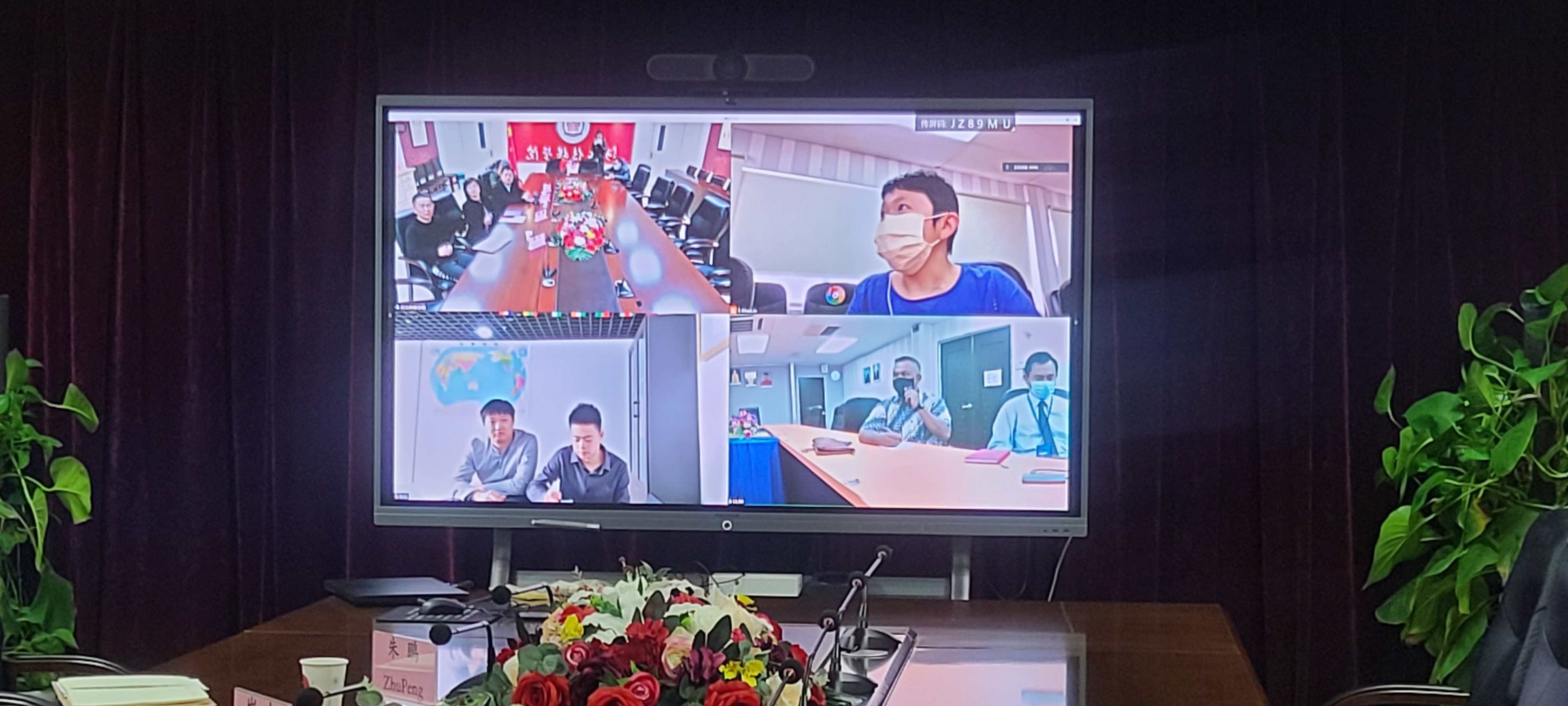 马来西亚北方大学传媒文理研究生院Prof. Hisham Dzakiria院长、国际合作事务中心Mr. Mohd Khairy Mukhtaruddin主任、博士生导师钟教授等马方人员与我方国际交流与合作处处长崔娜,新闻传播学院副院长朱良志,动画学院副院长朱鹏,以及影视艺术学院院长助理徐宁参加视频会议。