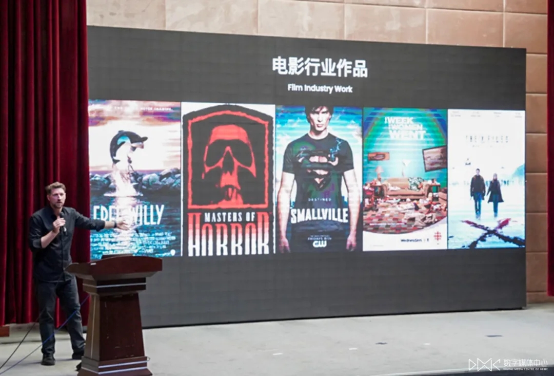 讲座伊始,Darren Borrowman 老师作为上海温哥华电影学院电影制作部主任,介绍了他对电影的理解,他是一位拥有近20年创作经验的独立电影制片人和影视教育者,曾在温哥华的电影行业工作,参与过电视剧如《X档案》和《超人前传》的制作,以及长片电影的导演、制片人、编辑和摄影师工作,拥有着非常丰富的实践经验和教育经验。