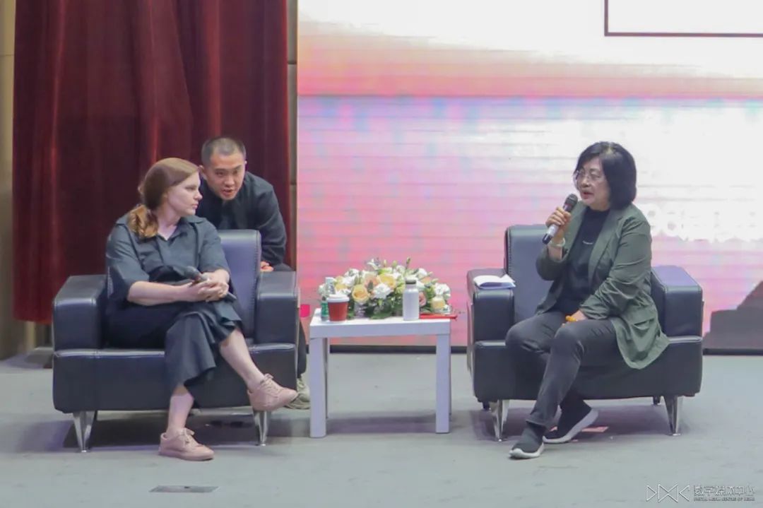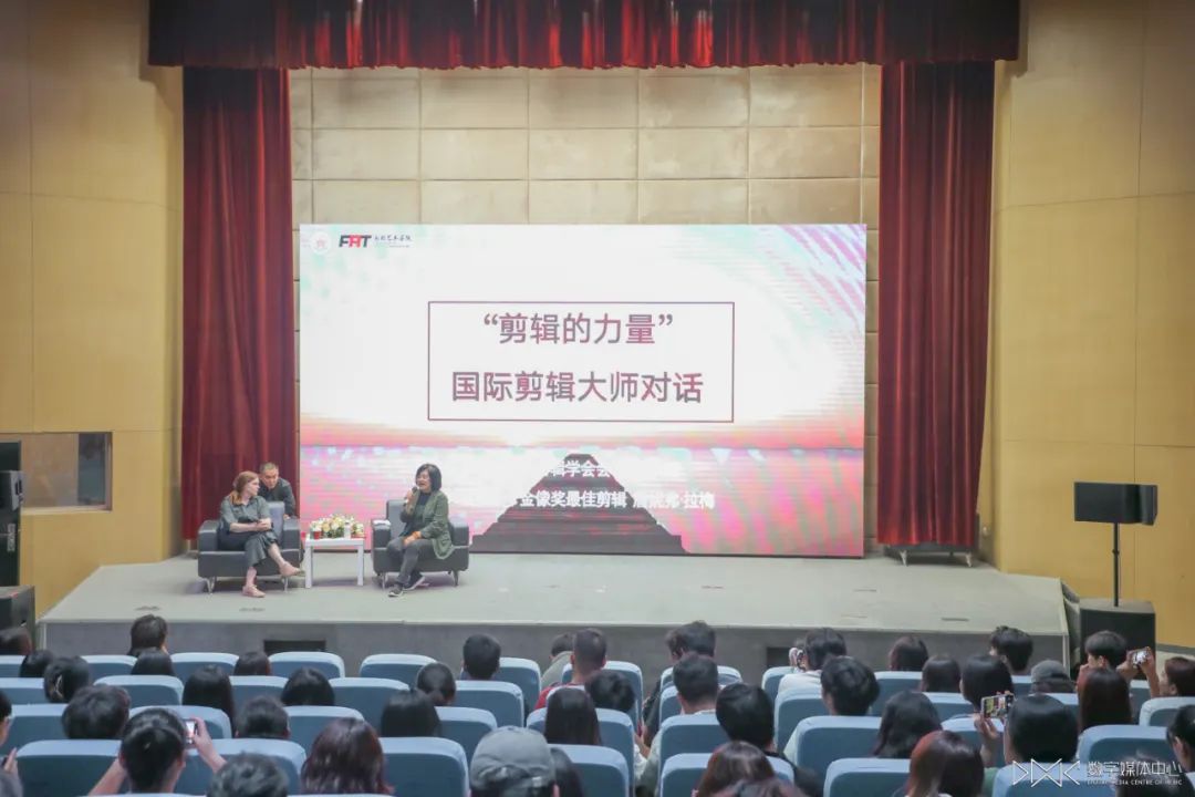 讲座开始前,梁锐副院长详细介绍了本次讲座的嘉宾,并引出了本次讲座的主题。随后,詹妮弗•拉梅女士与周新霞教授在台上进行对话。她们对剪辑的学习、剪辑手法的运用、剪辑上的尝试、声音音效等各个方面进行了详细的讨论。