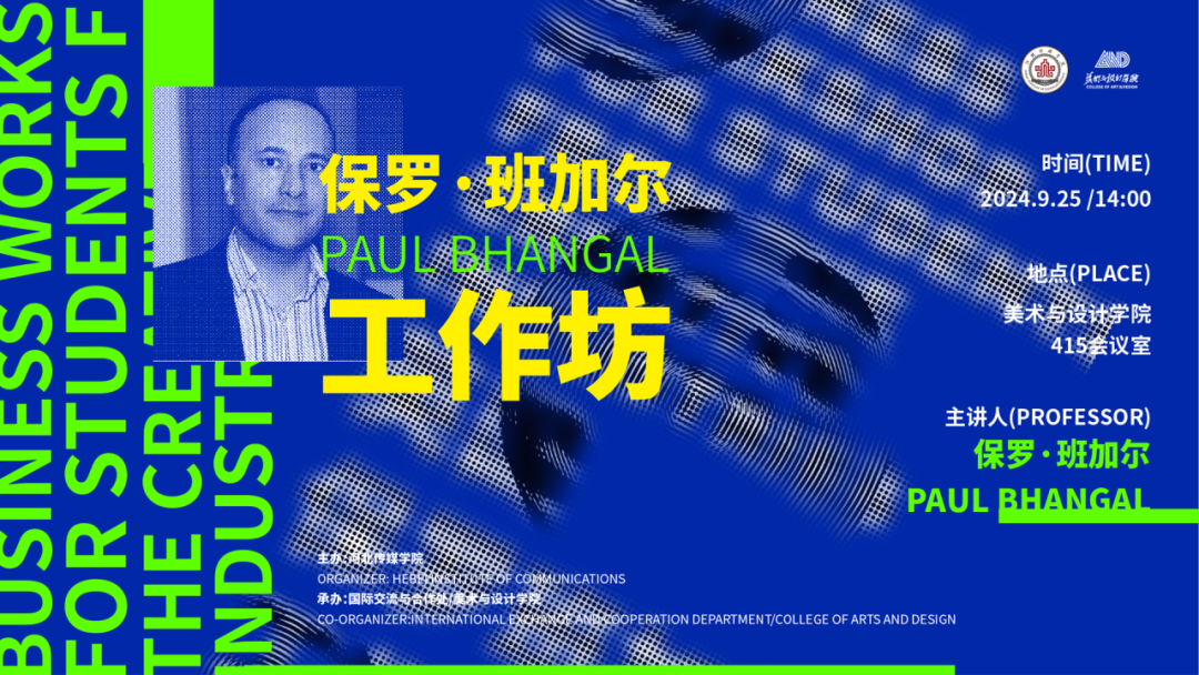 2024 年 9 月 25 日,由河北传媒学院国际交流与合作处承办、美术与设计学院协办的英国保罗·班加尔工作坊 ——“Business Workshop for students from the Creative Industries” (创意产业学生商业研讨会)在美术与设计学院成功举办。