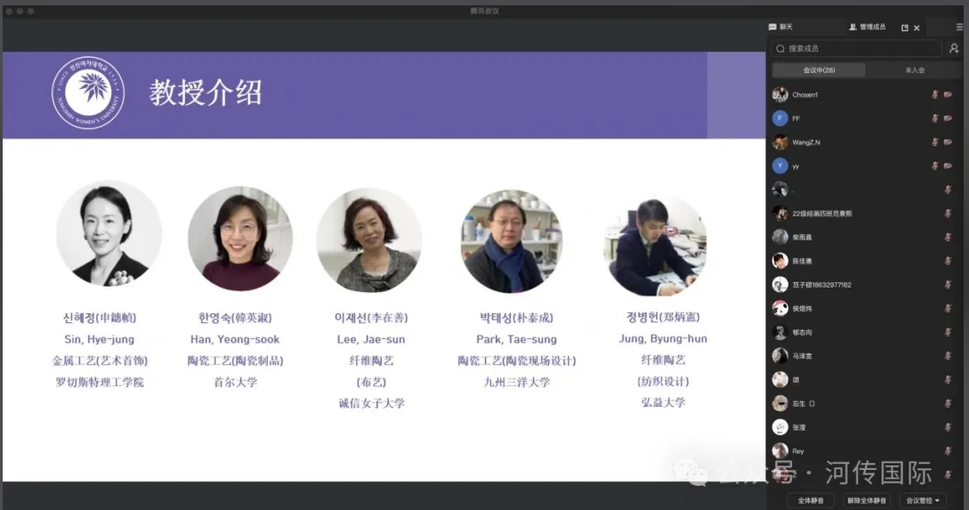 国际交流与合作处处长崔娜,美术与设计学院副院长张勇正, 韩国诚信女子大学国际项目负责人郑春实等出席会议;美术与设计学院大三学生30余人参加说明会,会议由张勇正副院长主持。