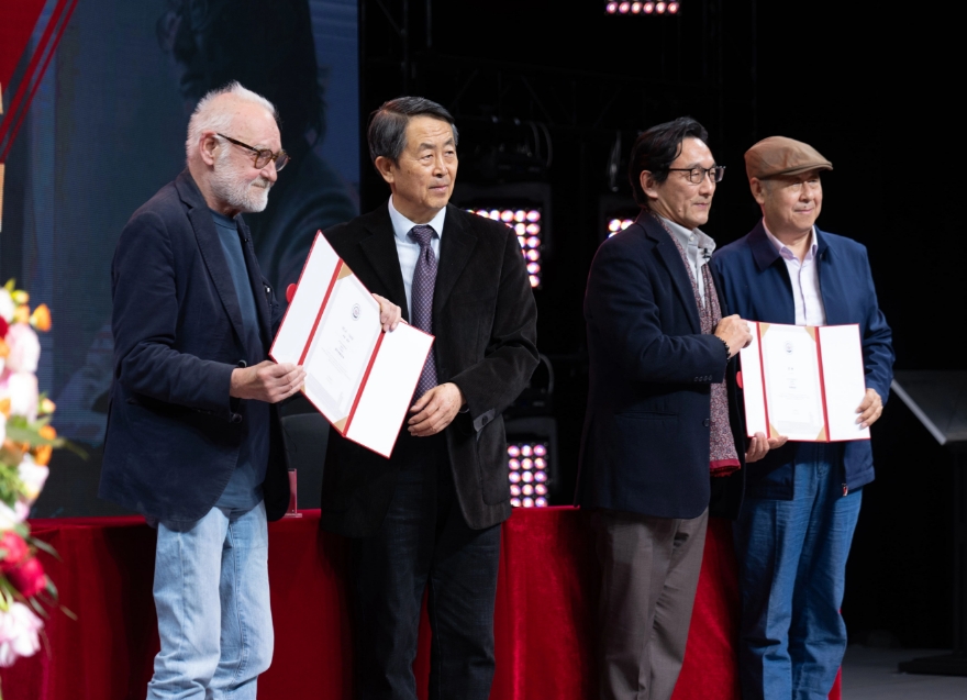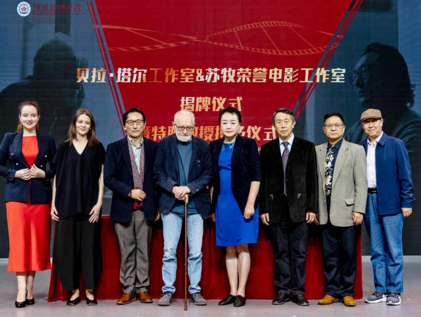 活动期间,河北传媒学院为贝拉•塔尔与苏牧教授颁发特聘教授聘书,并正式为贝拉·塔尔工作室和苏牧荣誉电影工作室揭牌。这一重要举措旨在深度推动“产学研”融合发展,借助工作室平台,以工作坊的创新形式指导学生进行作品创作,在实践中选拔和培养具有跨文化视野、创新精神和专业素养的影视人才,为电影行业输送新鲜血液。