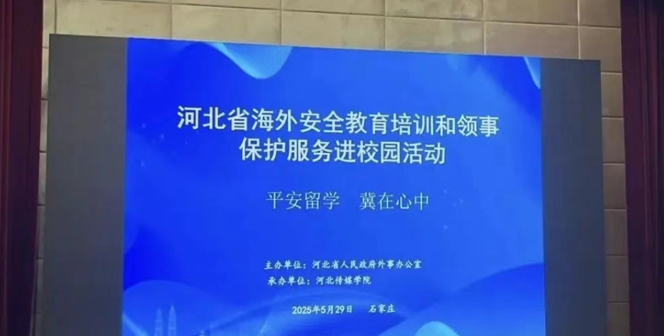 5月29日下午,“河北省海外安全教育培训和领事保护服务进校园活动”在我校兴安校区成功举办,此次活动由河北省人民政府外事办公室主办,河北传媒学院承办。