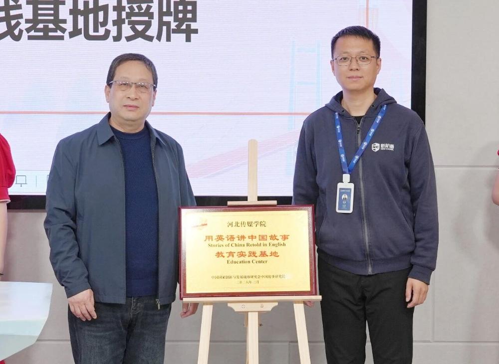 仪式现场,新航道国际教育集团石家庄学校向河北传媒学院授予“用英语讲中国故事教育实践基地”牌匾,标志着双方在文化传播与人才培养领域有了更深入的合作。
