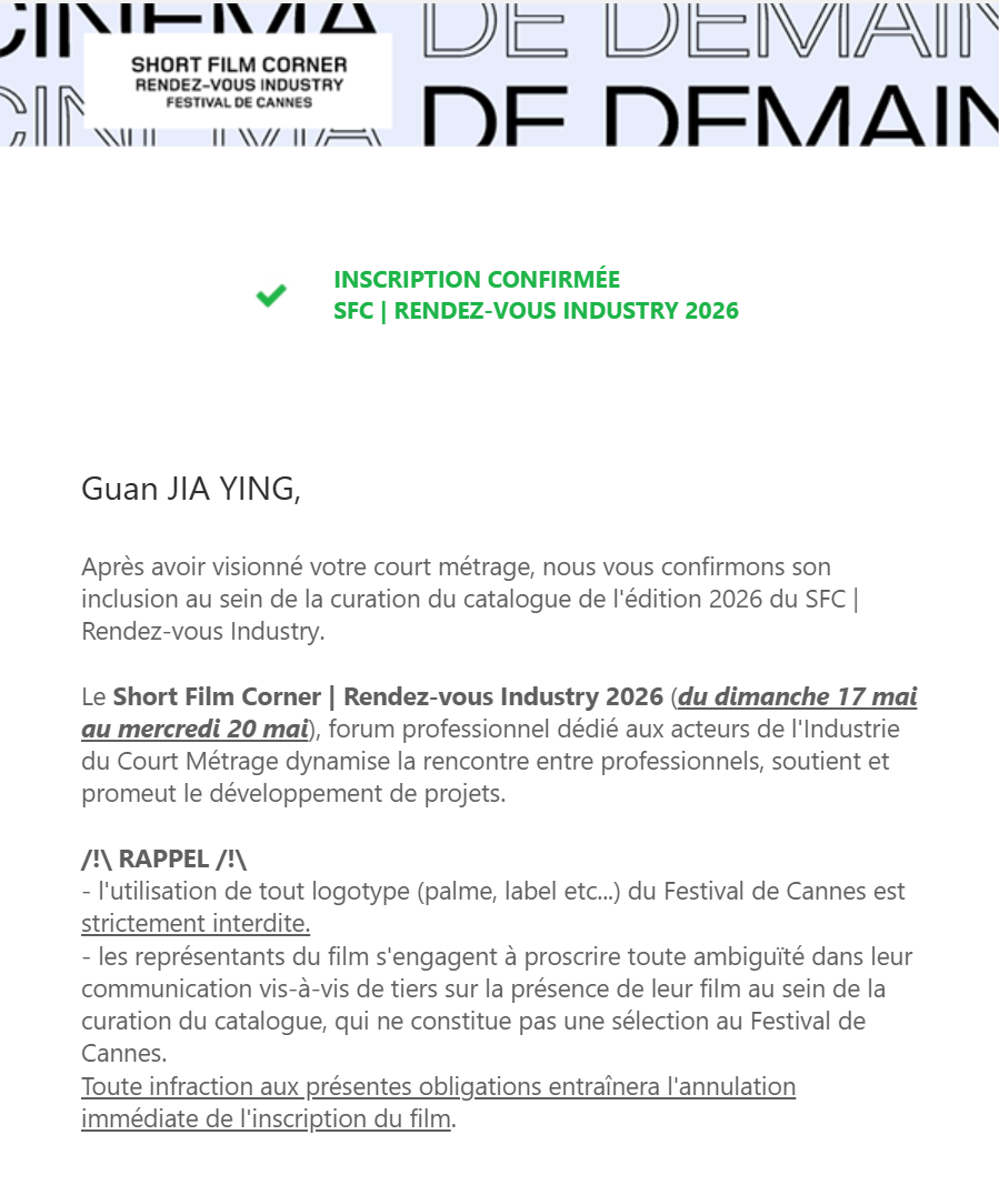 近日,由我校影视艺术学院2022级戏剧影视文学专业在校生官嘉颖执导的毕业作品《回南天》,成功入围第79届戛纳国际电影节“短片角”(Short Film Corner)单元。该单元将于5月在法国戛纳举行,近年来已成为全球青年导演创作与国际交流的重要平台,旨在推动短片艺术创新与项目孵化。